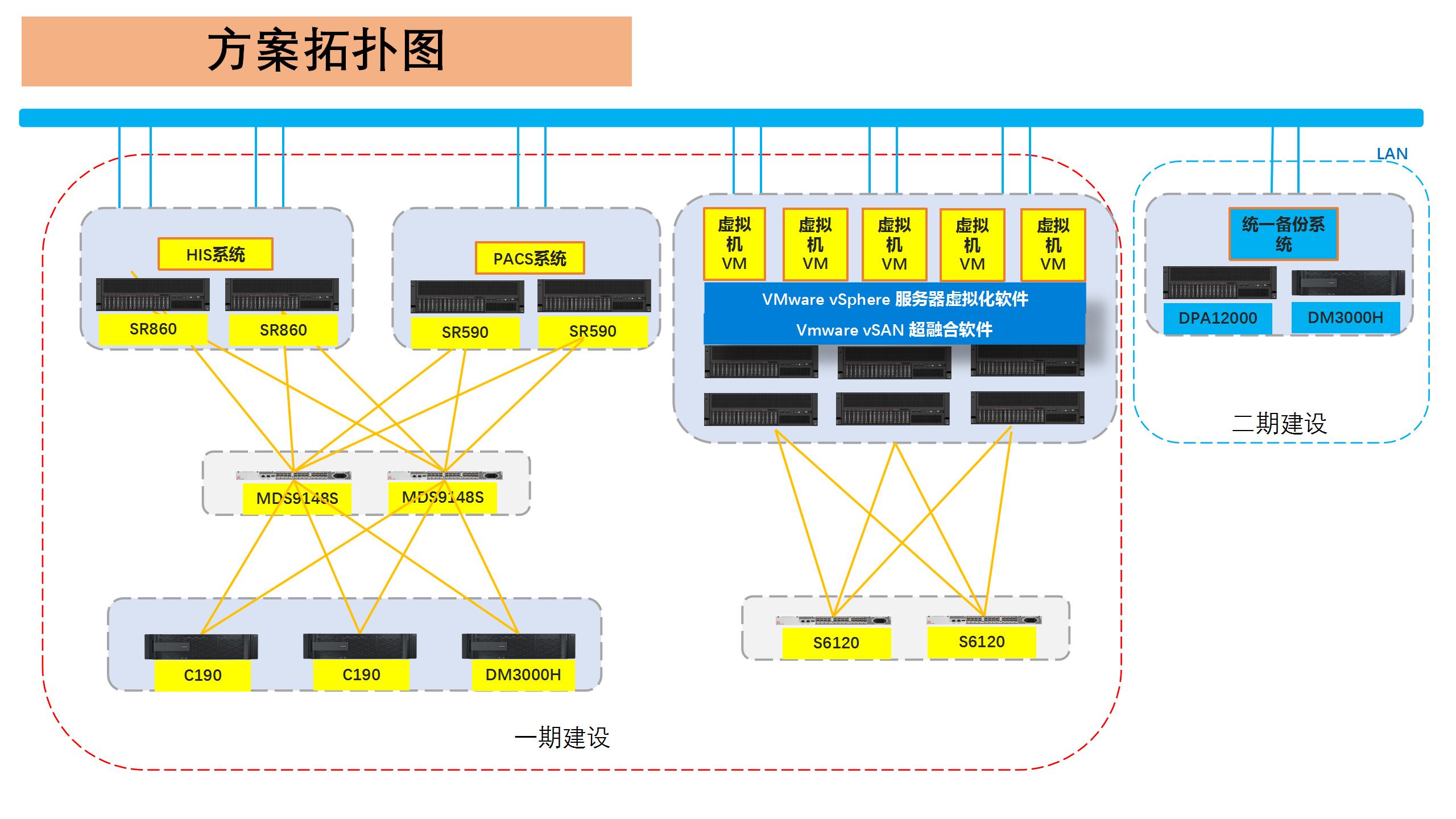 吳起縣人民醫(yī)院是一所集醫(yī)療、教學(xué)、科研、防保、急救為一體的綜合性二級(jí)甲等醫(yī)院,醫(yī)院承擔(dān)著該縣及周邊四縣近30萬人的診療保健任務(wù),是吳起縣最大的綜合性醫(yī)院。為深化醫(yī)藥衛(wèi)生體制改革,推進(jìn)醫(yī)共體建設(shè),提高醫(yī)院各項(xiàng)工作的效率和質(zhì)量,助力智慧型醫(yī)院落地,吳起縣人民醫(yī)院急需對(duì)原有業(yè)務(wù)系統(tǒng)進(jìn)行升級(jí)改造。 作為醫(yī)院信息化管理的基礎(chǔ)和骨架,HIS貫穿醫(yī)療流程、人員配置、患者就診信息、藥品銷售、庫存情況、營業(yè)狀況統(tǒng)計(jì)等全部模塊,是醫(yī)院統(tǒng)籌管理好“人-財(cái)-物“工作的基礎(chǔ),同時(shí)吳起縣人民醫(yī)院的設(shè)備上還運(yùn)行著 LIS實(shí)驗(yàn)室信息管理系統(tǒng)、PACS醫(yī)學(xué)影像存檔與通訊系統(tǒng)、手麻、體檢等一系列臨床應(yīng)用,由于設(shè)備老舊,醫(yī)院面臨高峰時(shí)段無法滿足使用需求,存儲(chǔ)故障率較高,數(shù)據(jù)安全威脅等諸多問題。基于吳起縣人民醫(yī)院的實(shí)際需求,在預(yù)算非常有限的情況下,藍(lán)島科技攜手聯(lián)想提供了令用戶滿意的解決方案,方案以聯(lián)想ThinkSystem SR860作為HIS系統(tǒng)服務(wù)器,SR860采用英特爾至強(qiáng)可擴(kuò)展處理器,為HIS系統(tǒng)的運(yùn)行提供了卓越的速度和可靠性;部署2臺(tái)NetApp C190通過SnapMirror-Business Continuity方式實(shí)現(xiàn)存儲(chǔ)級(jí)雙活;部署1臺(tái)DM3000H主要運(yùn)行PACS數(shù)據(jù)庫,未來通過SnapMirror,組成高可用環(huán)境;以6*VX5520構(gòu)建基于vSAN的超融合虛擬化資源池,搭載起吳起縣人民醫(yī)院的其他業(yè)務(wù)系統(tǒng),實(shí)現(xiàn)統(tǒng)一管理,彈性調(diào)度,靈活分配。