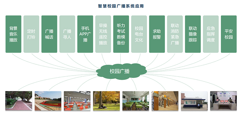 校園廣播系統(tǒng)主要用于學(xué)校日常的背景音樂播放、信息播放、廣播通知、找人等使用功能。在緊急情況下,校園公共廣播可以配合消防廣播系統(tǒng),針對事故發(fā)生現(xiàn)場,快速播報緊急疏散語音,提示相關(guān)區(qū)域的人員迅速逃離現(xiàn)場。